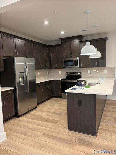 Brand-New Townhome-Style Condo Near Luxury Shopping in Richmond's West End Welcome to this brand-new, first-floor townhome-style condo in Stanley Martin's highly desirable Gayton Village. Ideally positioned within the community, this home offers ample parking, peaceful unobstructed views, and the ease of low-maintenance living. This 3-bedroom, 2.5-bath home with a one-car rear-load garage combines modern design, comfort, and flexibility. The open main level is bright and inviting, featuring luxury vinyl plank flooring, recessed lighting, and a seamless flow between the family room, dining area, and kitchen-perfect for both everyday living and entertaining. The kitchen is the centerpiece of the home, complete with granite countertops, stainless steel appliances, and an oversized 10-foot breakfast bar ideal for morning coffee, casual dining, or gathering with guests. A convenient powder room completes the main floor. Upstairs, the spacious primary suite offers two walk-in closets and a spa-inspired en-suite bath with granite counters, tile flooring, and a tiled shower with built-in bench seating. Two additional generously sized bedrooms share a full hall bath, and one bedroom opens to a private balcony, making it a great option for a home office, workout room, media space, or guest retreat. Additional highlights include second-floor laundry with washer and dryer, water included, HOA-managed exterior maintenance, and private walk-out access from the rear-load garage. A rare opportunity to enjoy a brand-new home in a prime West End location close to upscale shopping, dining, and everyday conveniences.